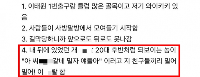 오른쪽 아래 길잡이 - 성장의 방 입장. 이태원에서 겨우 살아 나왔다는 네티즌은 10월30일 새벽 3.
